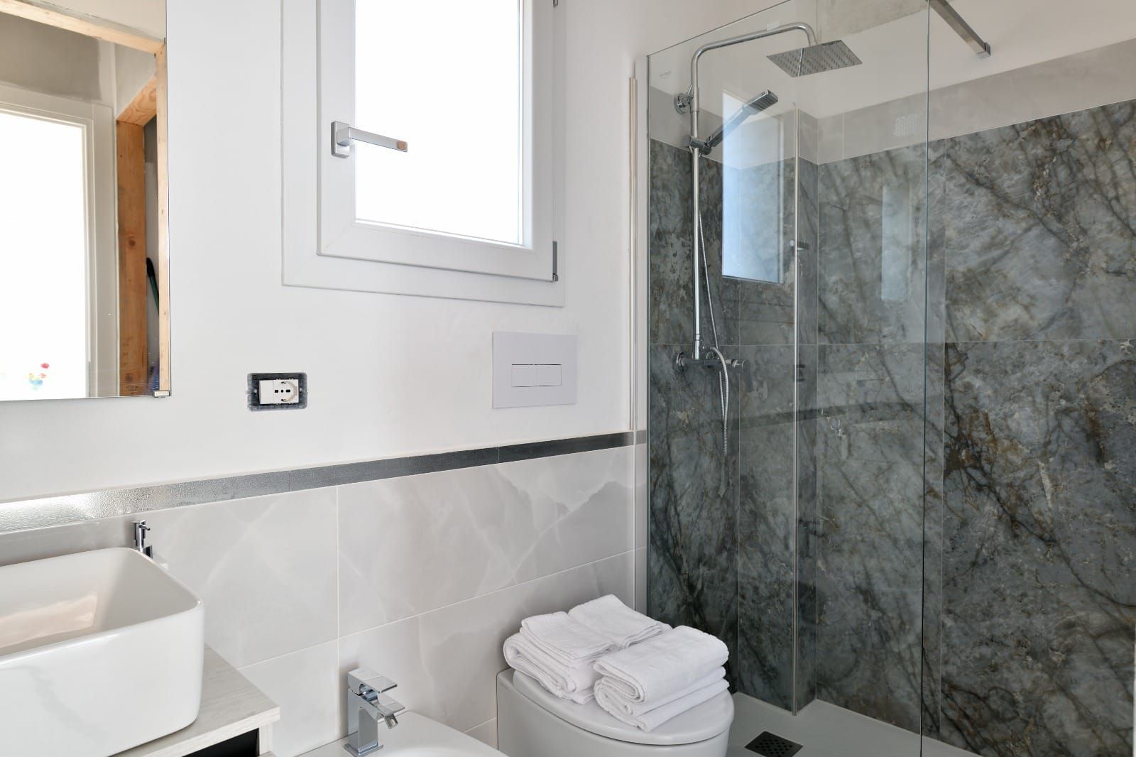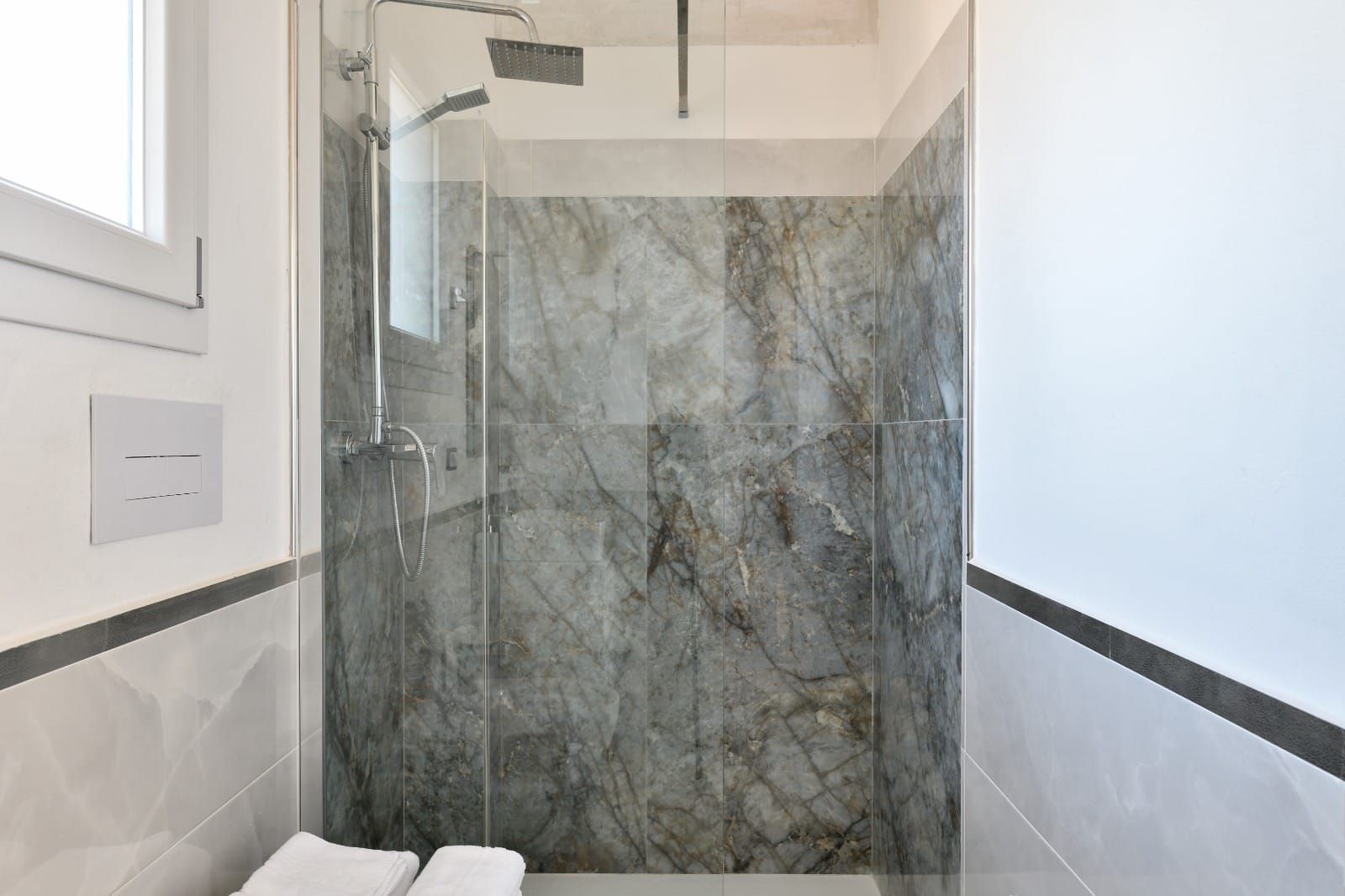 L' ampio giardino privato della villa, in stretto dialogo visivo e immersivo con l'ampio contesto della tenuta, oltre agli spazi adiacenti alla veranda e alla piscina, offre una zona barbecue attrezzata, e una zona per la doccia all' aperto.